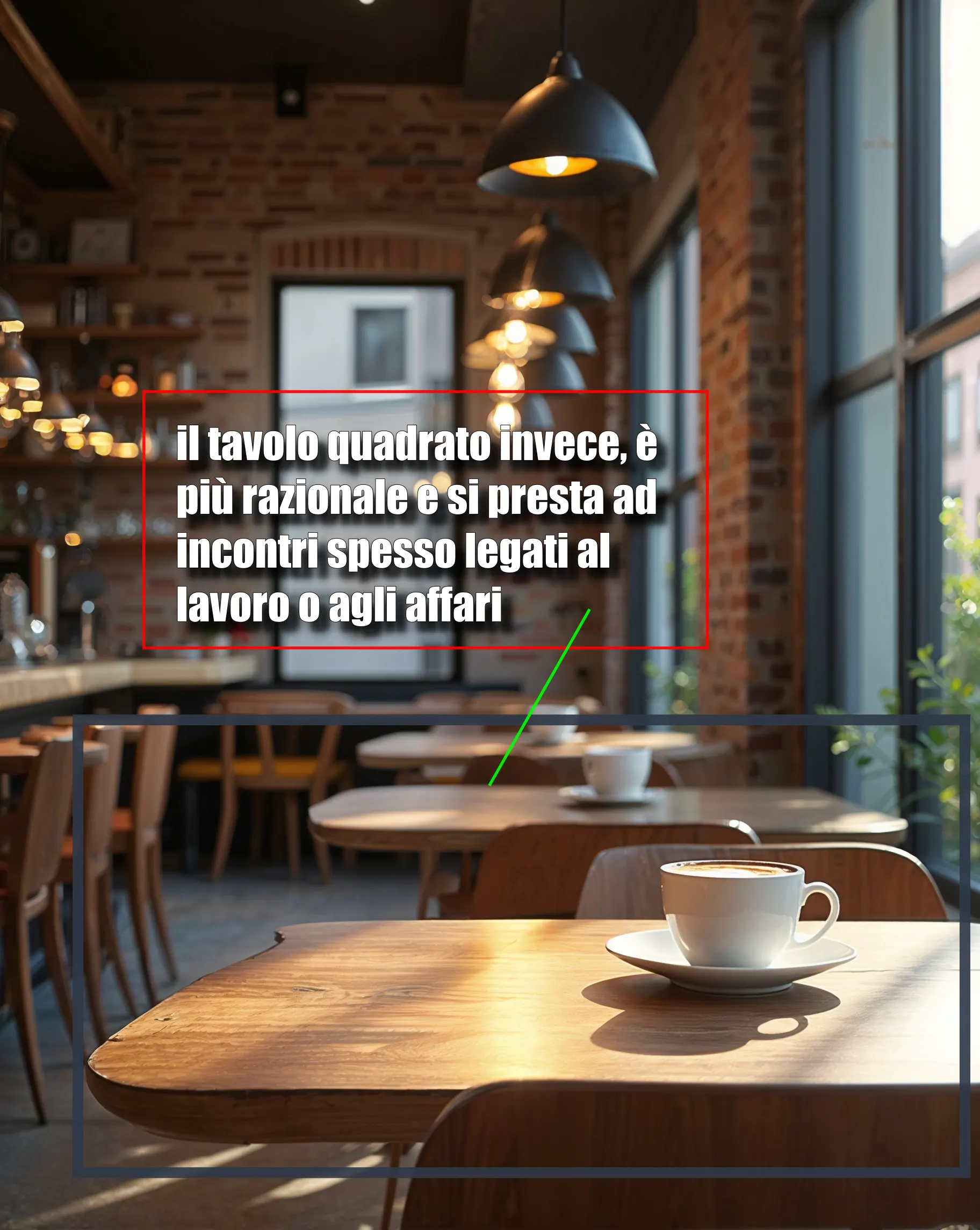 Chi vi scrive, aveva collaborato negli anni 90, con un architetto, esperto e designer degli Hotel Sheraton. Un certo Willy Willy Ramstein. Willy Ramstein aveva una verve umoristica, simile a Woody Allen. Mi mostrò come funzionava un tavolo con panca rettangolare, e lungo, adatto a pranzi e cene conviviali con più persone ed amici, ed un tavolino rotondo che consente solo a due persone di sedersi. Questo da la sensazione di “avvicinamento” più sicuro. Il tavolo lungo con panca , consente di inizare anche conoscere alcune persone, che in altri casi si possono conoscere personalmente in un altro momento. In quel caso la regola è sempre quella di invitare una persona in un luogo dove i tavoli sono rotondi, per avere maggiori probabilità di “eventuale successo”.